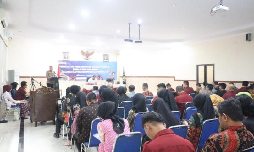 BENGKULU, eWarta.co – Kantor Wilayah Kementerian Hukum Dan HAM Bengkulu beserta jajaran menggelar penguatan dan pendampingan pembangunan zona integritas menuju WBK dan WBBM. Acara yang dilaksanakan di Ruang Soekarno Kantor Wilayah Kemenkumham Bengkulu di sampaikan langsung oleh Inspektur Wilayah II, Lilik Sujandi.