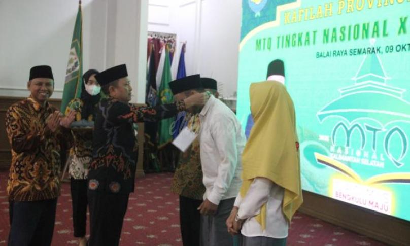 Pelepasan kontingen MTQ Nasional XXIX Bengkulu ditandai dengan penyematan tanda peserta secara simbolis oleh Sekda Hamka sekaligus penyerahan bendera Provinsi Bengkulu kepada kepala rombongan kafilah Bengkulu, untuk kemudian dikibarkan di Bumi Lambung Mangkurat, Provinsi Kalimantan Selatan (Kalsel).