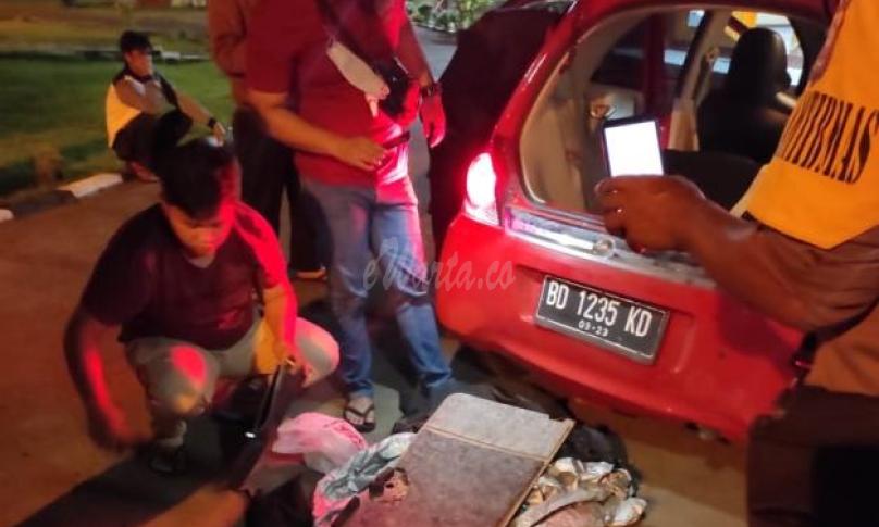 Setelah berhasil ditangkap, personil gabungan langsung melakukan penggeledahan mobil yang digunakan tersangka dan juga tes urine terhadap tersangka.