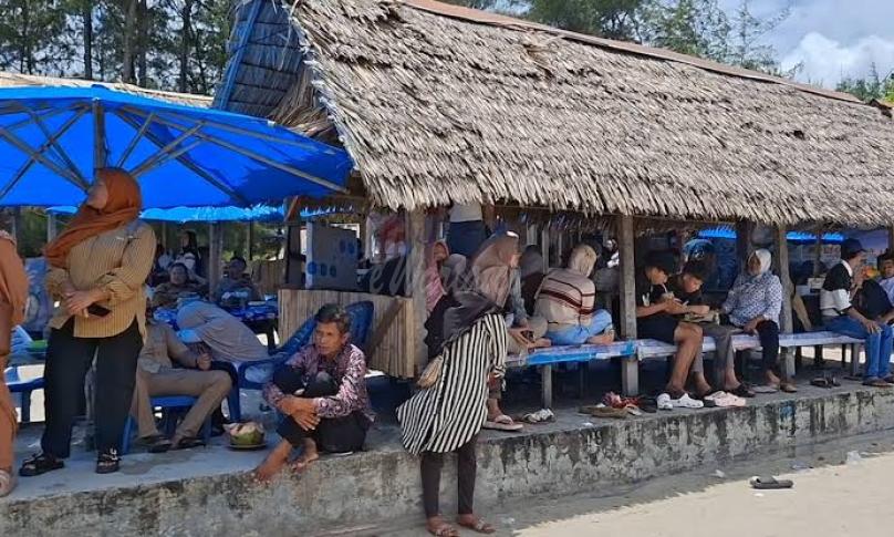 Mereka menikmati suasana pantai dengan menggelar tikar di bawah pohon cemara di depan pos Sub Satgas PRC Shelter sambil makan siang bersama keluarga. Menurut Eliana, fasilitas tong sampah yang tersedia di sekitar lokasi membuat pengunjung lebih mudah menjaga kebersihan.