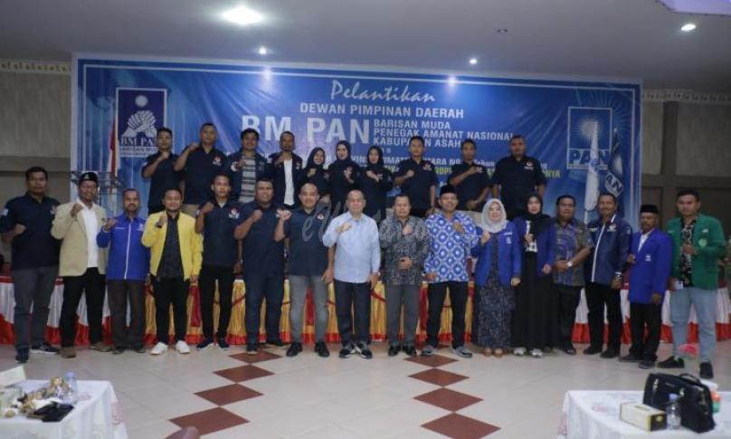 Asahan, eWARTA.co -- Ketua Dewan Pimpinan Wilayah (DPW) Barisan Muda (BM) Penegak Amanat Nasional (PAN) Sumatera Utara (Sumut) Mora Harahap melantik DPD BM PAN Kabupaten Asahan di Aula Hotel Sabty Garden Kisaran, Sabtu malam (16/07/2022).