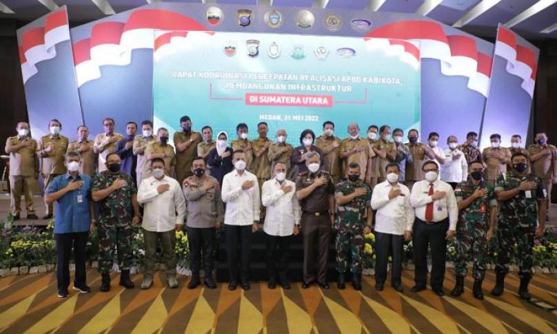 Asahan, eWARTA.co - Bupati Asahan H. Surya, BSc bersama Forkopimda Kabupaten Asahan menghadiri Rapat Koordinasi Percepatan Realisasi APBD Kabupaten/Kota dan pembangunan infrastuktur di Hotel Santika Dyandra, Jalan Kapten Maulana Lubis, Medan, Selasa (31/05/2022).