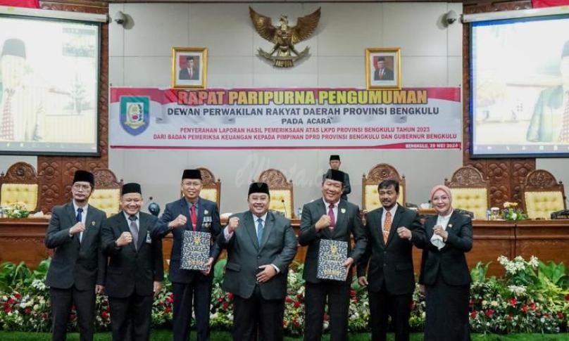 Bengkulu, eWarta.co -- Pemerintah Provinsi Bengkulu kembali meraih opini Wajar Tanpa Pengecualian (WTP) atas Laporan Keuangan Pemerintah Daerah (LKPD) Provinsi Bengkulu tahun 2023 dari Badan Pemeriksa Keuangan (BPK). Ini merupakan prestasi membanggakan karena diraih untuk ketujuh kalinya secara berturut-turut sejak tahun 2017.