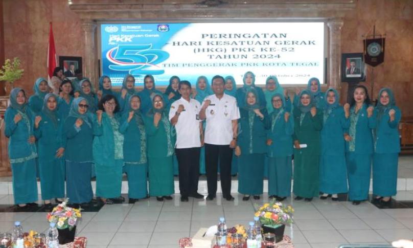 "Salah satu kunci keberhasilan pemberdayaan masyarakat adalah dengan memperkuat peran perempuan, yang juga merupakan penggerak utama dalam keluarga," ungkap Agus Dwi Sulistyantono saat peringatan Hari Kesatuan Gerak (HKG) Pemberdayaan dan Kesejahteraan Keluarga (PKK) ke-52 tahun 2024, di Ruang Adipura Komplek Balai Kota Tegal, Rabu (30/10/2024).