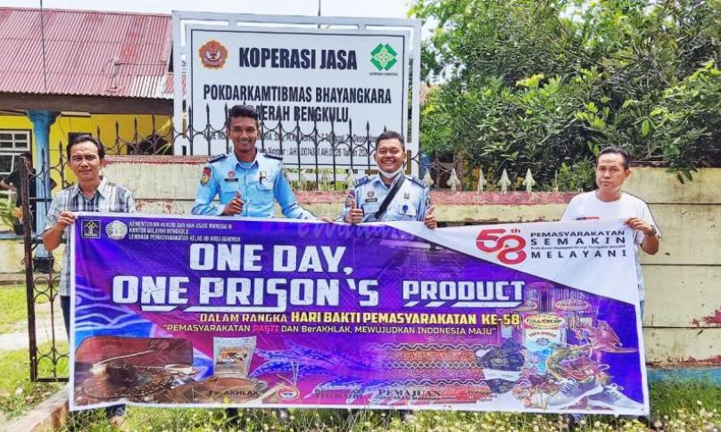 BENGKULU,eWARTA.co - Peringati Hari Bakti Pemasyarakatan ke-58 Tahun 2022, Lembaga Pemasyarakatan (Lapas) Arga Makmur melakukan penjualan produk hasil karya narapidana yang merupakan bagian dari rangkaian one day one prison's product kepada Kelompok Sadar Keamanan dan Ketertiban Masyarakat (Pokdarkamtibmas) Bhayangkara Daerah Bengkulu.