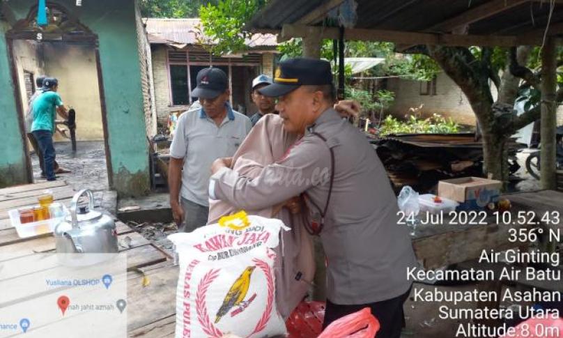 Asahan, eWARTA.co -- Polsek Air Batu Polres Asahan memberikan bantuan kepada korban bencana kebakaran yang terjadi di Dusun VI Desa Air Genting Kec. Air Batu Kab. Asahan, Minggu (24/7/2022).