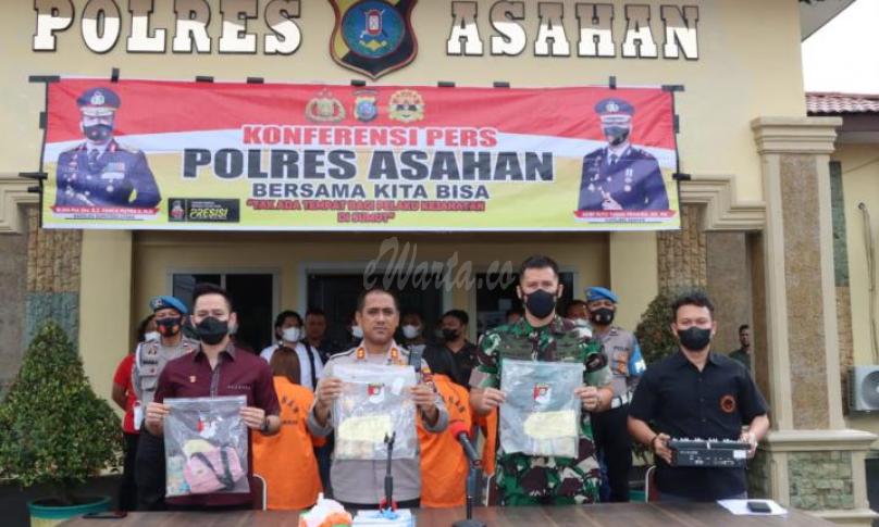 Asahan, eWARTA.co - Polres Asahan memaparkan kasus tindak pidana perjudian dan perbuatan cabul terhadap anak, Jumat (22/7/2022).