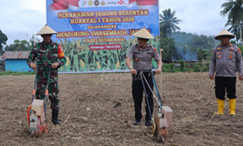 KOTAMOBAGU, eWarta.co – Polres Kotamobagu turut ambil bagian dalam program nasional penguatan ketahanan pangan melalui kegiatan penanaman jagung serentak Kuartal I Tahun 2026. Kegiatan ini berlangsung di lahan milik Polres Kotamobagu di samping Markas Polsek Lolayan, Desa Mopait, Kecamatan Lolayan, minggu (8/3/2026).
