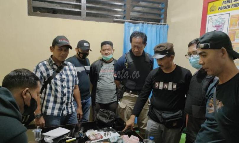 Selanjutnya dari lokasi tersebut petugas mengamankan enam warga lainnya, yang diduga sedang pesta Narkoba, yaitu AJ (30), TC (36), FR (32), FR (18), AR (53) dan BN (30). Petugas juga menyita barang bukti Narkoba jenis sabu, inex, satu senpi rakitan jenis revolver, lima amunisi jenis FN, sebuah Sajam, tujuh unit HP dan satu unit mobil pick up.
