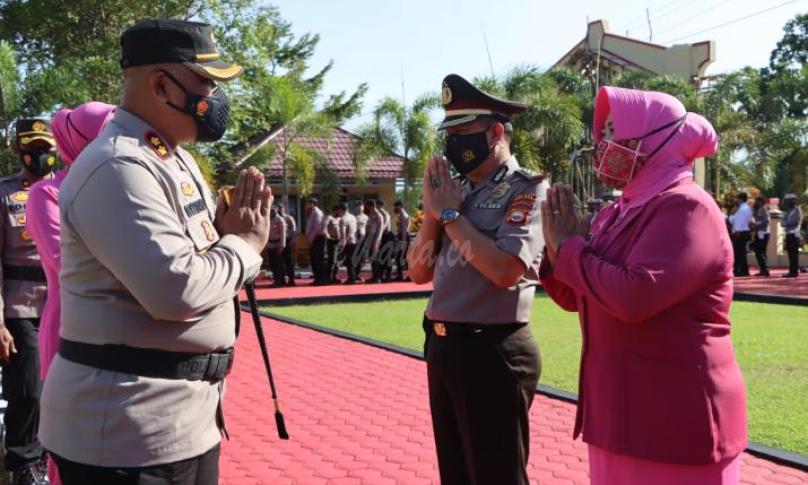 Menerapkan protokol kesehatan ditengah pandemi covid-19, kegiatan kemudian dilanjutkan dengan pemberian ucapan selamat untuk 33 Anggota Polres dan Brimob dengan tetap menjaga jarak selama beraktivitas.