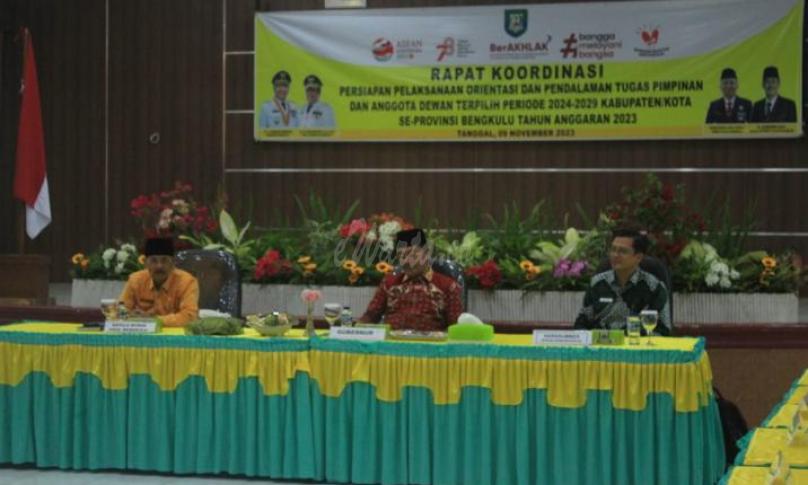 BENGKULU, ewarta.co -- Asisten II Pemerintah Provinsi Bengkulu R.A Denny mewakili Gubernur Bengkulu Rohidin Mersyah menghadiri Rapat Koordinasi Persiapan Pelaksanaan Orientasi dan Pendalaman Tugas Pimpinan Anggota Dewan Periode 2024 - 2029 Kabupaten/Kota se Provinsi Bengkulu.