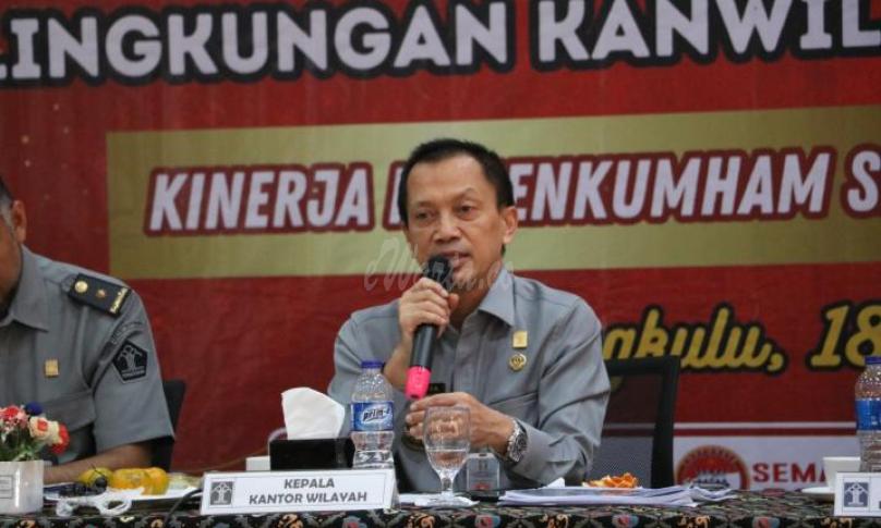 Dalam kesempatan ini Kakanwil menegaskan agar satuan kerja di Lingkungan Kanwil Kemenkumham Bengkulu pada tahun 2024 harus meraih predikat WBK dan melakukan percepatan penyerapan anggaran.