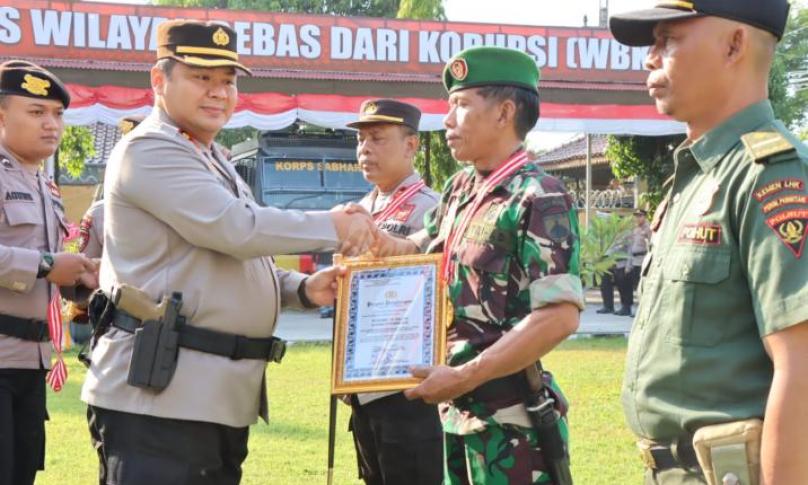Penghargaan langsung diberikan oleh Kapolres Brebes AKBP Guntur Muhammad Tariq dalam kegiatan apel yang diselenggarakan dihalaman Mapolres Brebes, Rabu (26/7/2023).