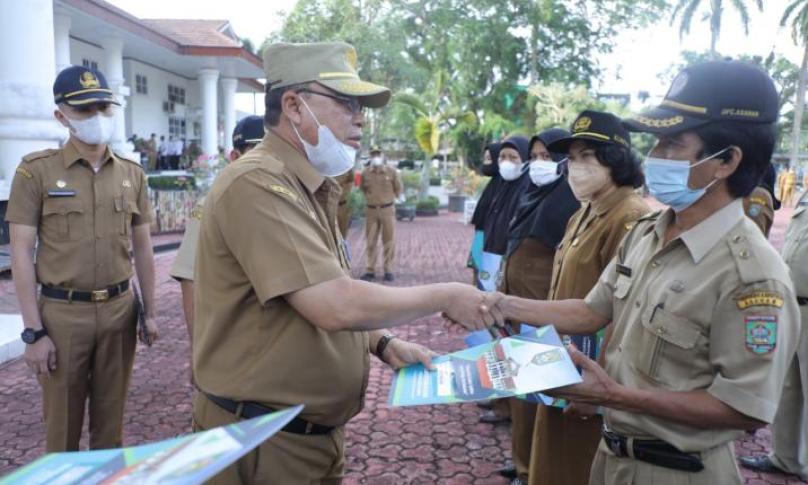 Selanjutnya Sekda mengatakan, saya telah menyerahkan SK kenaikan pangkat periode 1 April 2022 kepada para PNS yang secara syarat dan ketentuan dapat dinaikkan pangkatnya satu jenjang lebih tinggi sebagai suatu apresiasi yang diberikan kepada mereka yang memiliki kinerja dan loyalitas yang baik.