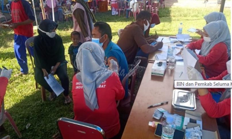 "Pada hari ini kami BIN Bengkulu bekerjasama dengan Pemda Seluma mengadakan Vaksinasi Massal dan Door to Door dalam rangka menuju Indonesia sehat, Indonesia hebat untuk Masyarakat Kecamatan Air Periukan, juga Kecamatan Sukaraja dan sekitarnya dengan target 2120 warga tervaksin pada hari ini," kata Kabag Ops BIN Daerah Bengkulu, Kolonel Inf Yanuar Yusvi Herminto.