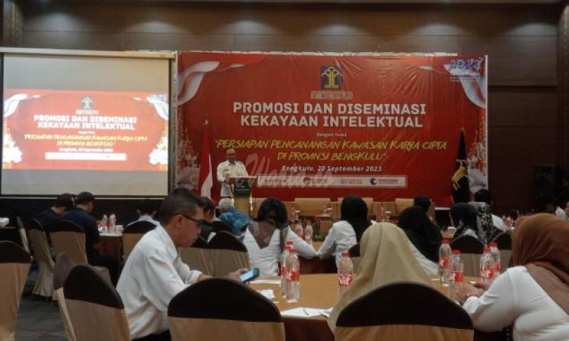 BENGKULU, eWARTA.co -- Kantor Wilayah Kementerian Hukum dan Hak Asasi Manusia (Kanwil Kemenkumham) Bengkulu menggelar promosi dan diseminasi kekayaan intelektual dengan tema persiapan pencanangan kawasan karya cipta di Provinsi Bengkulu pada Rabu (20/9/23).