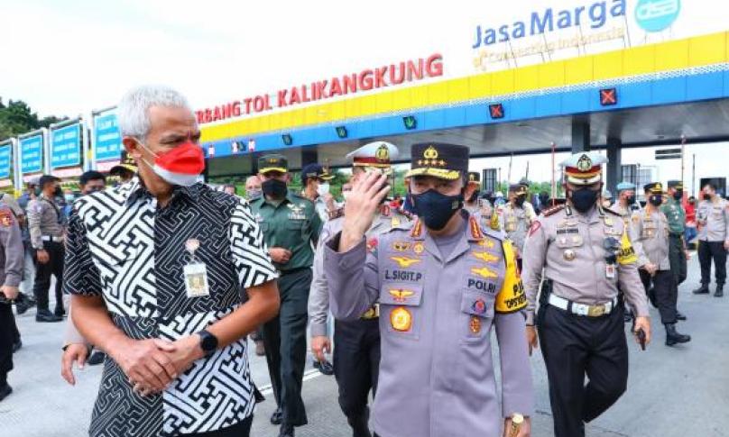 JAWA TENGAH,eWARTA.co - Kapolri Jenderal Listyo Sigit Prabowo bersama dengan Gubernur Jawa Tengah (Jateng) Ganjar Pranowo beserta stakeholder lainnya meninjau langsung Pos Terpadu Gerbang Tol Kalikangkung KM 414 untuk memastikan kesiapan pelayanan mudik Lebaran 2022.