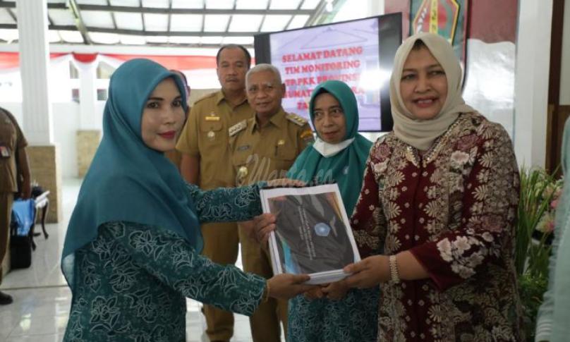 ASAHAN, eWARTA.co -- TP PKK Kabupaten Asahan bersama dengan Pemerintah Kabupaten Asahan menyambut Kedatangan Tim Monitoring TP PKK Provinsi Sumatera Utara (Provsu) di Pendopo Rumah Dinas Bupati Asahan dalam rangka monitoring desa pelaksana Tertib Administrasi PKK, PAAR, UP2K PKK, Hatinya PKK, IVA Test Tahun 2022, Senin (05/09/2022).