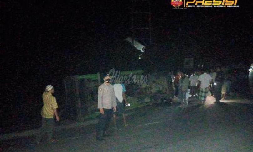BENGKULU,eWARTA.co -- Diduga tidak kuat saat melintasi jalanan yang menanjak, satu unit kendaraan bermotor roda enam jenis mobil dump truk tadi malam Sabtu (23/10) mundur dan terbalik.