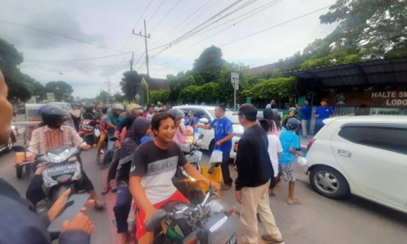Pembagian takjil dilakukan sekitar pukul 16.00, di satu titik. pembagian dilakukan di perempatan Kanigoro.Minggu sore (16/4/2023).