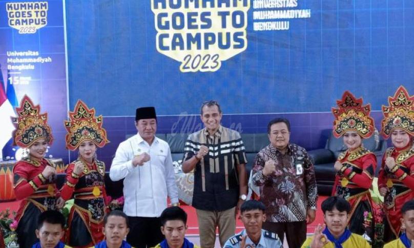 BENGKULU, eWarta.co -- Kementerian Hukum dan Hak Asasi Manusia (Kumham) RI menggelar Kumham Goes To Campus, di Universitas Muhammadiyah Bengkulu (UMB), Kota Bengkulu, Rabu (15/3/23). Kegiatan ini bertujuan untuk memberikan pemahaman baru tentang Undang-Undang KUHP yang telah disahkan.