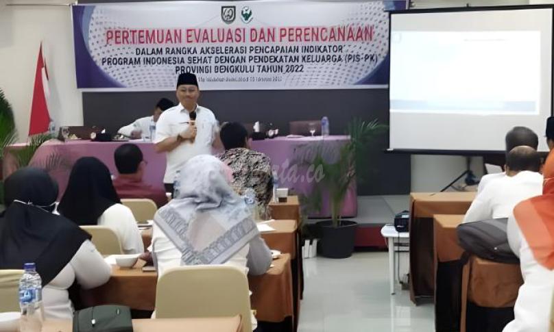 Bengkulu, eWarta.co -- Kepala Dinas Pemberdayaan Masyarakat dan Desa (PMD) Provinsi Bengkulu RA Denni, SH, MM menjadi narasumber pada pertemuan evaluasi dan perencanaan dalam rangka akselerasi pencapaian indikator program Indonesia sehat dengan pendekatan keluarga Provinsi Bengkulu, Rabu (26/10/2022).