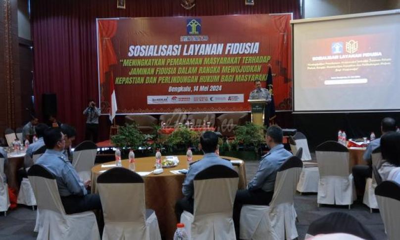 BENGKULU, eWarta.co - Kantor Wilayah Kementerian Hukum dan Hak Asasi Manusia (Kanwil Kemenkumham) Bengkulu mengadakan Sosialisasi Layanan Fidusia di Hotel Santika Bengkulu, dengan tujuan meningkatkan pemahaman masyarakat tentang Jaminan Fidusia.